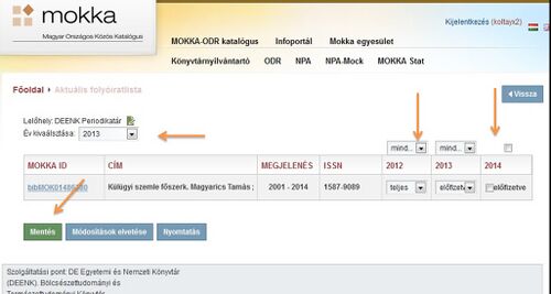 Bármely egyetlen folyóirat-év státuszát az Állománybejelentés ablakban Allomanybejelentes1 3.jpg
